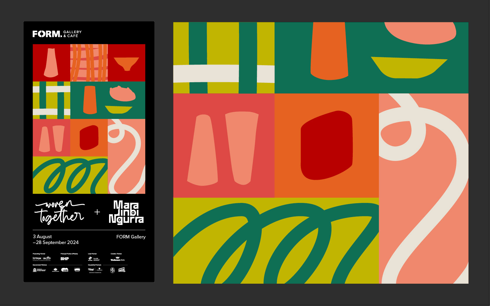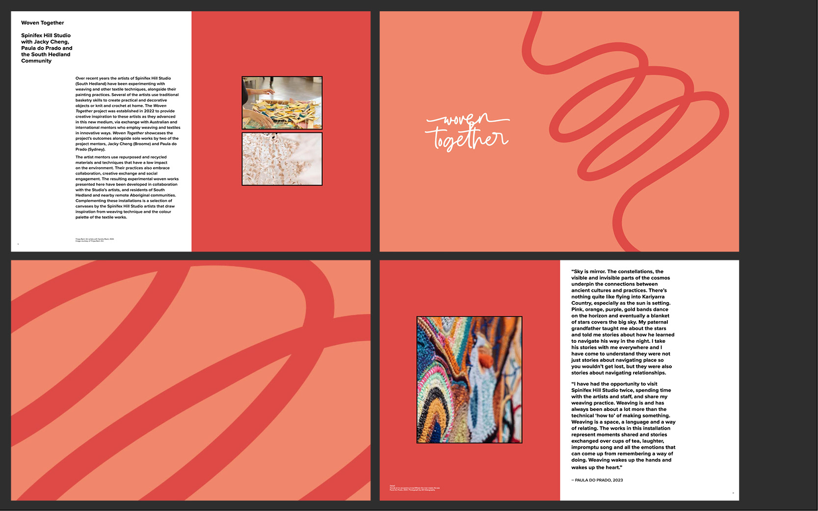 Exhibition branding, social media content, exhibition catalogue for the combined exhibition "Woven Together + Mara, Jinbi, Ngurra" as a part of 2024 IOTA program.
