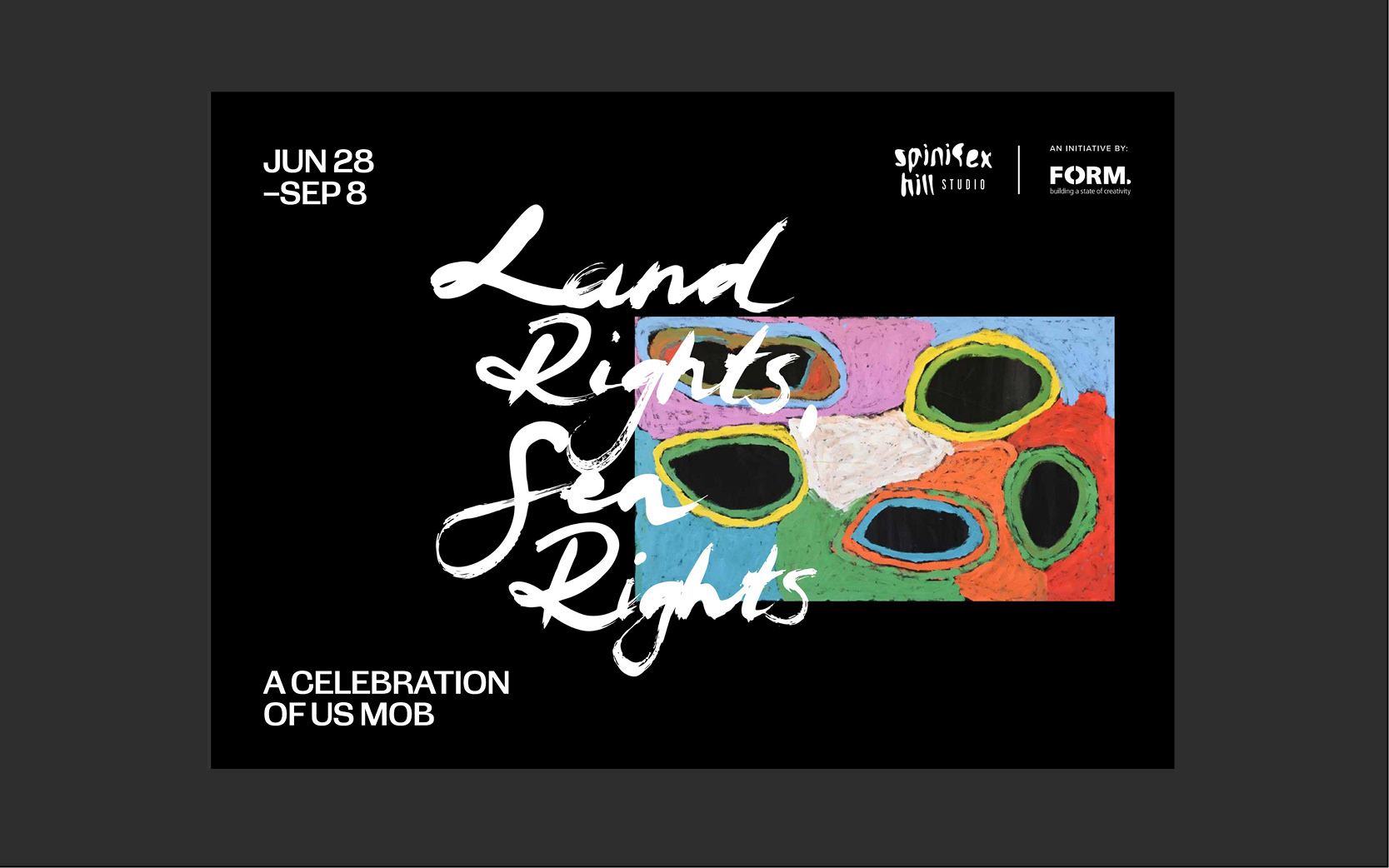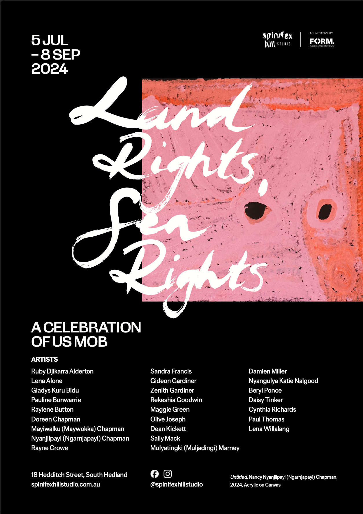 Exhibition branding, social media, exhibition catalogue for Spinifex Hill Studios exhibition "Land Rights, Sea Rights", 2024.